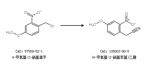 1.通过4-甲氧基-2-硝基溴苄合成(4-甲氧基-2-硝基苯基)乙腈
