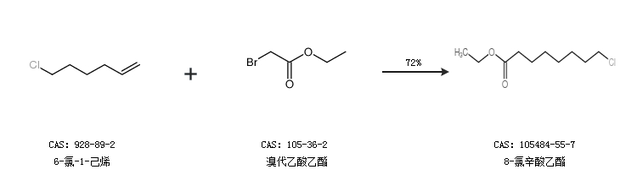 1.通过6-氯-1-己烯和溴代乙酸乙酯合成8-氯辛酸乙酯,收率约72%;