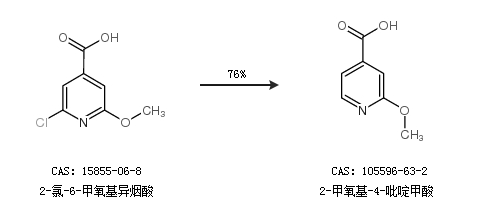 1.通过2-氯-6-甲氧基异烟酸合成2-甲氧基-4-吡啶甲酸,收率约76%;