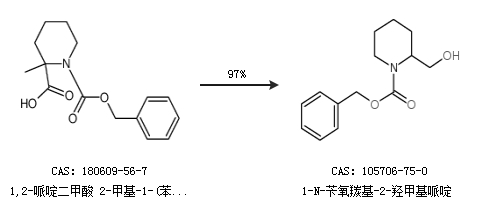 2.通过1,2-哌啶二甲酸 2-甲基-1-(苯基甲基)酯合成1-N-苄氧羰基-2-羟甲基哌啶,收率约97%;