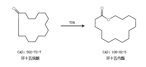 1.通过环十五烷酮合成环十五内酯,收率约70%;