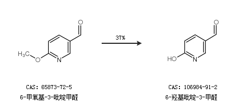 1.通过6-甲氧基-3-吡啶甲醛合成6-羟基吡啶-3-甲醛,收率约37%;