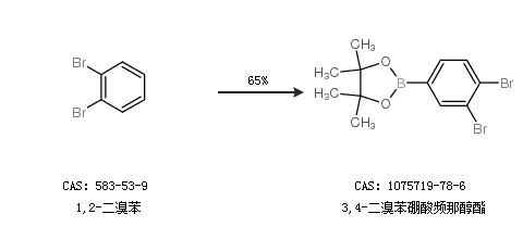 2.通过1,2-二溴苯合成3,4-二溴苯硼酸频那醇酯,收率约65%;