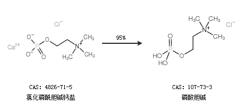 1.通过氯化磷酰胆碱钙盐合成磷酸胆碱,收率约95%;