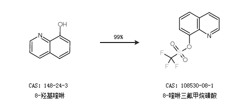 1.通过8-羟基喹啉合成8-喹啉三氟甲烷磺酸,收率约99%;
