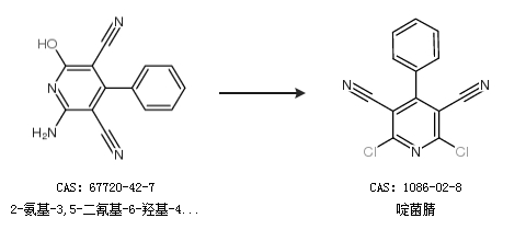2.通过2-氨基-3,5-二氰基-6-羟基-4-苯基吡啶合成啶菌腈