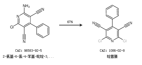 1.通过2-氨基-6-氯-4-苯基-吡啶-3,5-二甲腈合成啶菌腈,收率约67%;