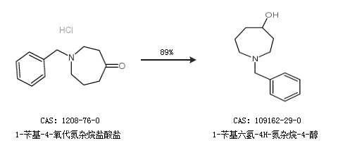 2.通过1-苄基-4-氧代氮杂烷盐酸盐合成1-苄基六氢-4H-氮杂烷-4-醇,收率约89%;