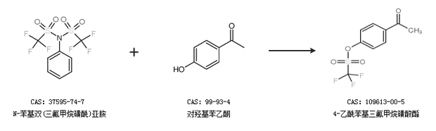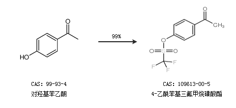 1.通过对羟基苯乙酮合成4-乙酰苯基三氟甲烷磺酸酯,收率约99%;