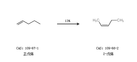 2.通过正戊烯合成2-戊烯,收率约13%;