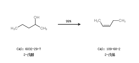 1.通过2-戊醇合成2-戊烯,收率约99%;
