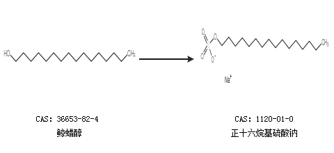 中文别名 十六烷基硫酸钠;1-十六烷醇氢硫酸钠;鲸蜡醇硫酸酯钠盐;