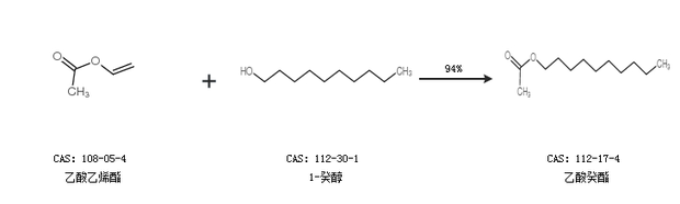1.通过乙酸乙烯酯和1-癸醇合成乙酸癸酯,收率约94%;