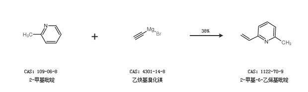 2.通过2-甲基吡啶和乙炔基溴化镁合成2-甲基-6-乙烯基吡啶,收率约38%;