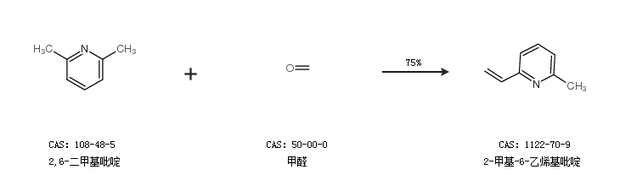 1.通过2,6-二甲基吡啶和甲醛合成2-甲基-6-乙烯基吡啶,收率约75%;