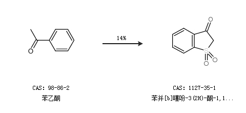 1.通过苯乙酮合成苯并[b]噻吩-3(2H)-酮-1,1-二氧化物,收率约14%;