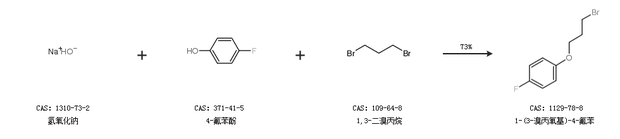 2.通过氢氧化钠、4-氟苯酚和1,3-二溴丙烷合成1-(3-溴丙氧基)-4-氟苯,收率约73%;