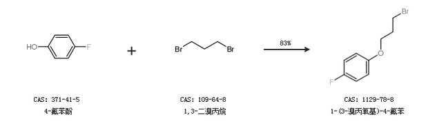 1.通过4-氟苯酚和1,3-二溴丙烷合成1-(3-溴丙氧基)-4-氟苯,收率约83%;