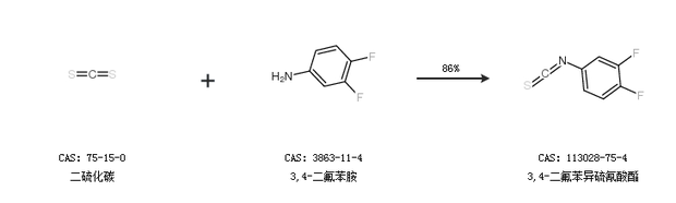 1.通过二硫化碳和3,4-二氟苯胺合成3,4-二氟苯异硫氰酸酯,收率约86%;