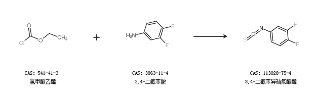 2.通过氯甲酸乙酯和3,4-二氟苯胺合成3,4-二氟苯异硫氰酸酯