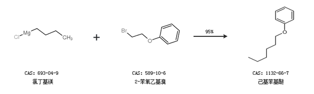 1.通过氯丁基镁和2-苯氧乙基溴合成己基苯基醚,收率约95%;