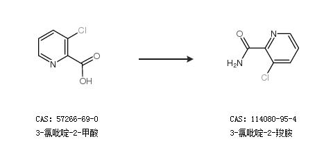 英文别名 3-Chlor-pyridin-2-carbonsaeure-amid;3-chloro-pyridine-2-carboxylic acid amide;CL0289;3-chloronicotinamide;2-Pyridinecarboxamide,3-chloro;3-CHLOROPICOLINAMIDE;