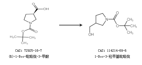 2.通过(R)-1-Boc-吡咯烷-3-甲酸合成1-Boc-3-羟甲基吡咯烷