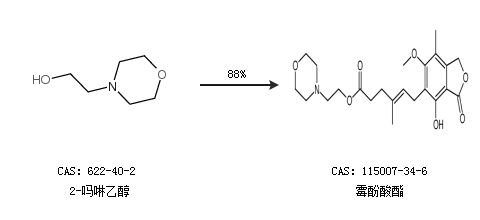 1.通过2-吗啉乙醇合成霉酚酸酯,收率约88%;