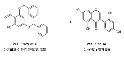 1.通过2-乙酰基-3,5-双(苄氧基)苯酚合成2''-羟基金雀异黄素