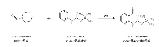 2.通过哌啶-1-甲醛和2-(Boc-氨基)吡啶合成2-Boc-氨基-3-吡啶甲醛,收率约59%;