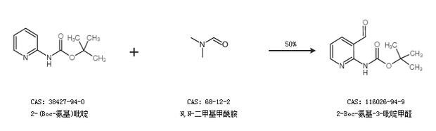 1.通过2-(Boc-氨基)吡啶和N,N-二甲基甲酰胺合成2-Boc-氨基-3-吡啶甲醛,收率约50%;