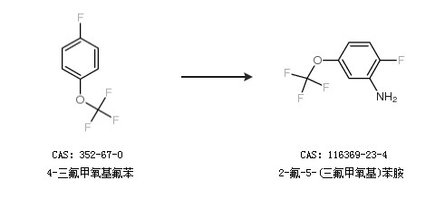 1.通过4-三氟甲氧基氟苯合成2-氟-5-(三氟甲氧基)苯胺