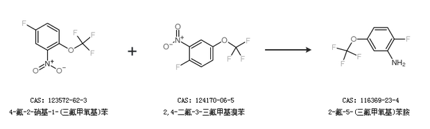 2.通过4-氟-2-硝基-1-(三氟甲氧基)苯和2,4-二氟-3-三氟甲基溴苯合成2-氟-5-(三氟甲氧基)苯胺