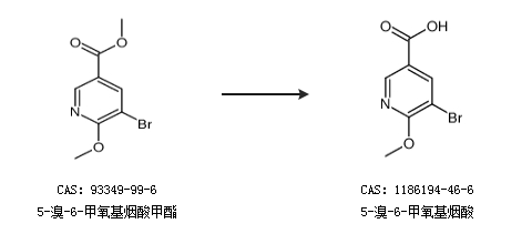 1.通过5-溴-6-甲氧基烟酸甲酯合成5-溴-6-甲氧基烟酸