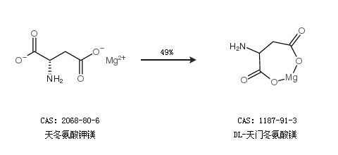 1.通过天冬氨酸钾镁合成DL-天门冬氨酸镁,收率约49%;