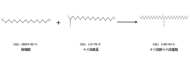 1.通过鲸蜡醇和硬脂酸合成十八烷酸十六烷基酯,收率约97%;