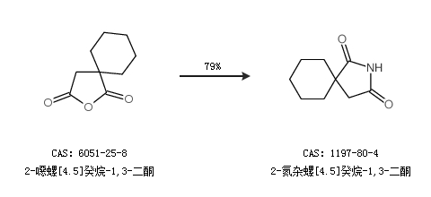 1.通过2-噁螺[4.5]癸烷-1,3-二酮合成2-氮杂螺[4.5]癸烷-1,3-二酮,收率约79%;