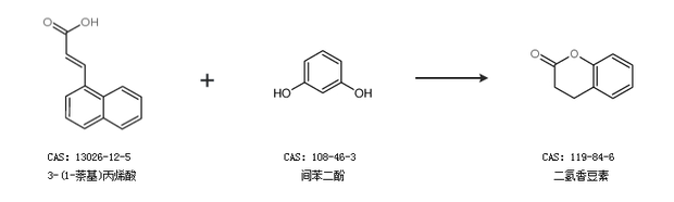 1.通过3-(1-萘基)丙烯酸和间苯二酚合成二氢香豆素