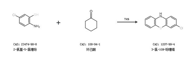 1.通过2-氨基-5-氯噻吩和环己酮合成3-氯-10H-吩噻嗪,收率约74%;