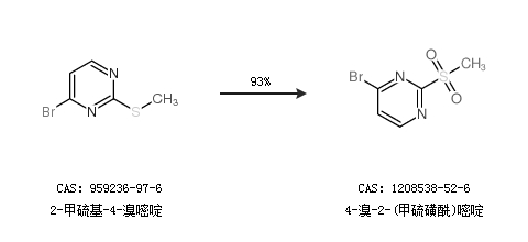 1.通过2-甲硫基-4-溴嘧啶合成4-溴-2-(甲硫磺酰)嘧啶,收率约93%;