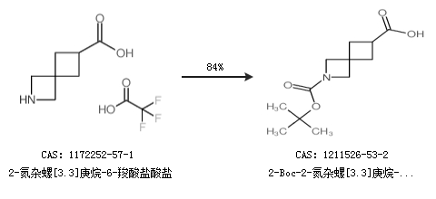 1.通过2-氮杂螺[3.3]庚烷-6-羧酸盐酸盐合成2-Boc-2-氮杂螺[3.3]庚烷-6-羧酸,收率约84%;