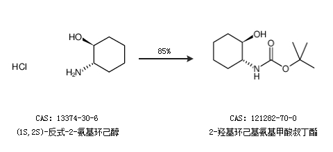 1.通过(1S,2S)-反式-2-氨基环己醇合成2-羟基环己基氨基甲酸叔丁酯,收率约85%;