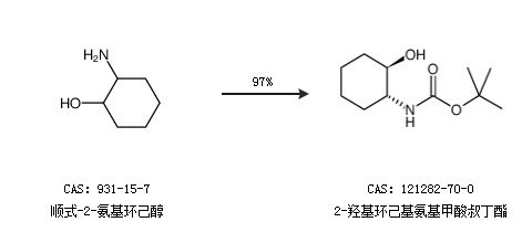 2.通过顺式-2-氨基环己醇合成2-羟基环己基氨基甲酸叔丁酯,收率约97%;