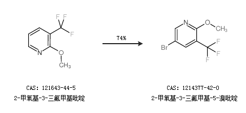 1.通过2-甲氧基-3-三氟甲基吡啶合成2-甲氧基-3-三氟甲基-5-溴吡啶,收率约74%;
