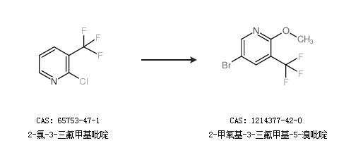 2.通过2-氯-3-三氟甲基吡啶合成2-甲氧基-3-三氟甲基-5-溴吡啶