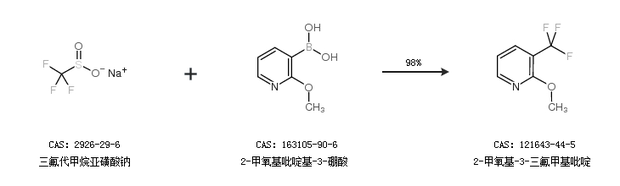 2.通过三氟代甲烷亚磺酸钠和2-甲氧基吡啶基-3-硼酸合成2-甲氧基-3-三氟甲基吡啶,收率约98%;