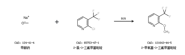 1.通过甲醇钠和2-氯-3-三氟甲基吡啶合成2-甲氧基-3-三氟甲基吡啶,收率约91%;