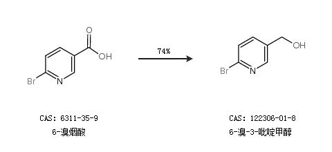 2.通过6-溴烟酸合成6-溴-3-吡啶甲醇,收率约74%;