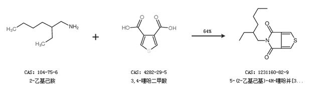 2.通过2-乙基己胺和3,4-噻吩二羧酸酐合成5-(2-乙基己基)-4H-噻吩并[3,4-c]吡咯-4,6(5h)-二酮