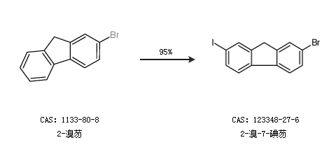 1.通过2-溴芴合成2-溴-7-碘芴,收率约95%;